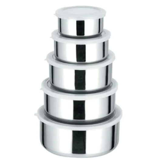XSXS Set de 5 caserole alimentare, metalice, cu capac transparent, marimi diferite