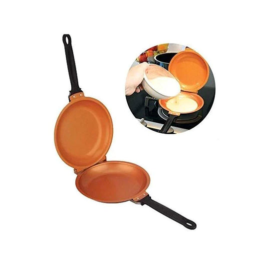 Tigaie dubla pentru clatite, antiaderenta, manere reci, crem, 35x20x5 cm