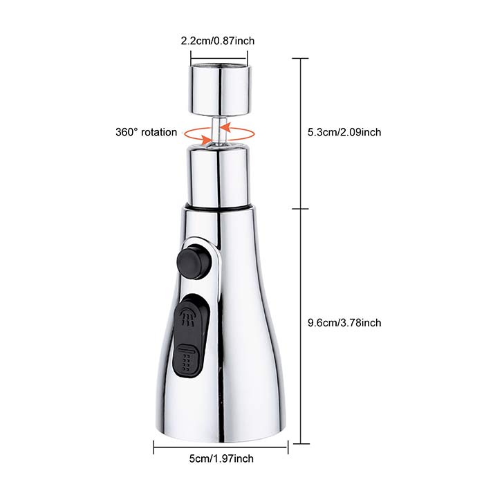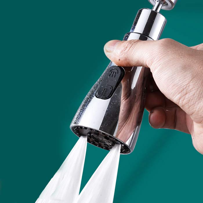 Robinetul de bucătărie este echipat cu 3 moduri distincte de curgere – debit puternic, pulverizare și modul economic. Cu un cap rotativ la 360 de grade, acest robinet de bucătărie facilitează spălarea fără efort de vase, pregătirea alimentelor și curățarea chiuvetei.