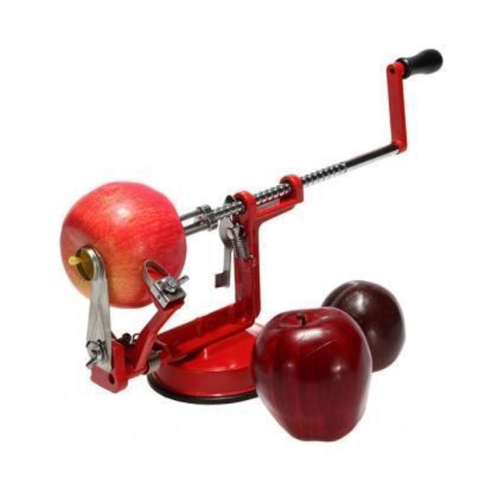 – o singura rasucire si marul sau cartoful este curatat, feliat si scobit;