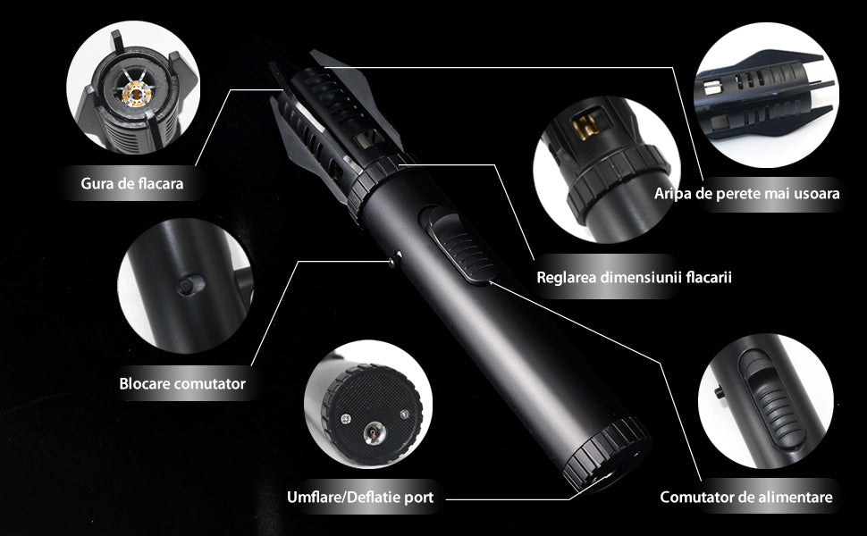 - Flacără puternică și direcționată pentru o aprindere eficientă