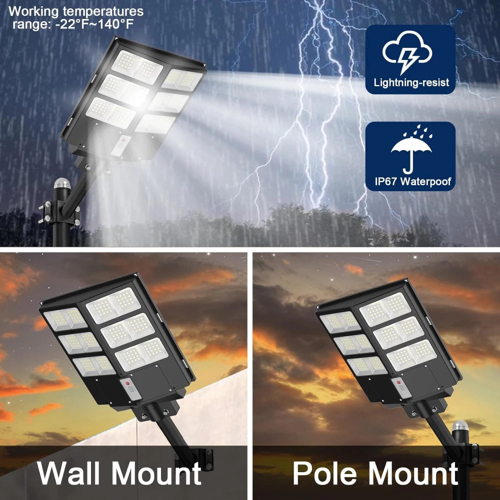 Lampa solara cu baterie incorporata, panou fotovoltaic, telecomanda+suport metalic+manual instructiuni.