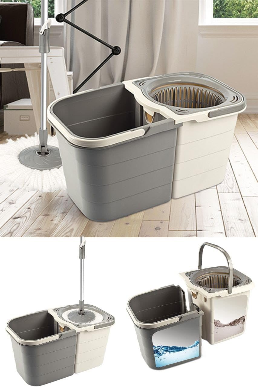 Mop Rotativ cu Două Recipiente Separabile + CADOU 3 REZERVE