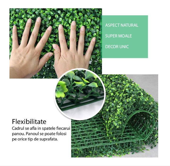 - Aspect Realist: Panoul artificial este proiectat pentru a imita cu fidelitate frunzele naturale, oferind un aspect luxuriant și proaspăt pe tot parcursul anului.