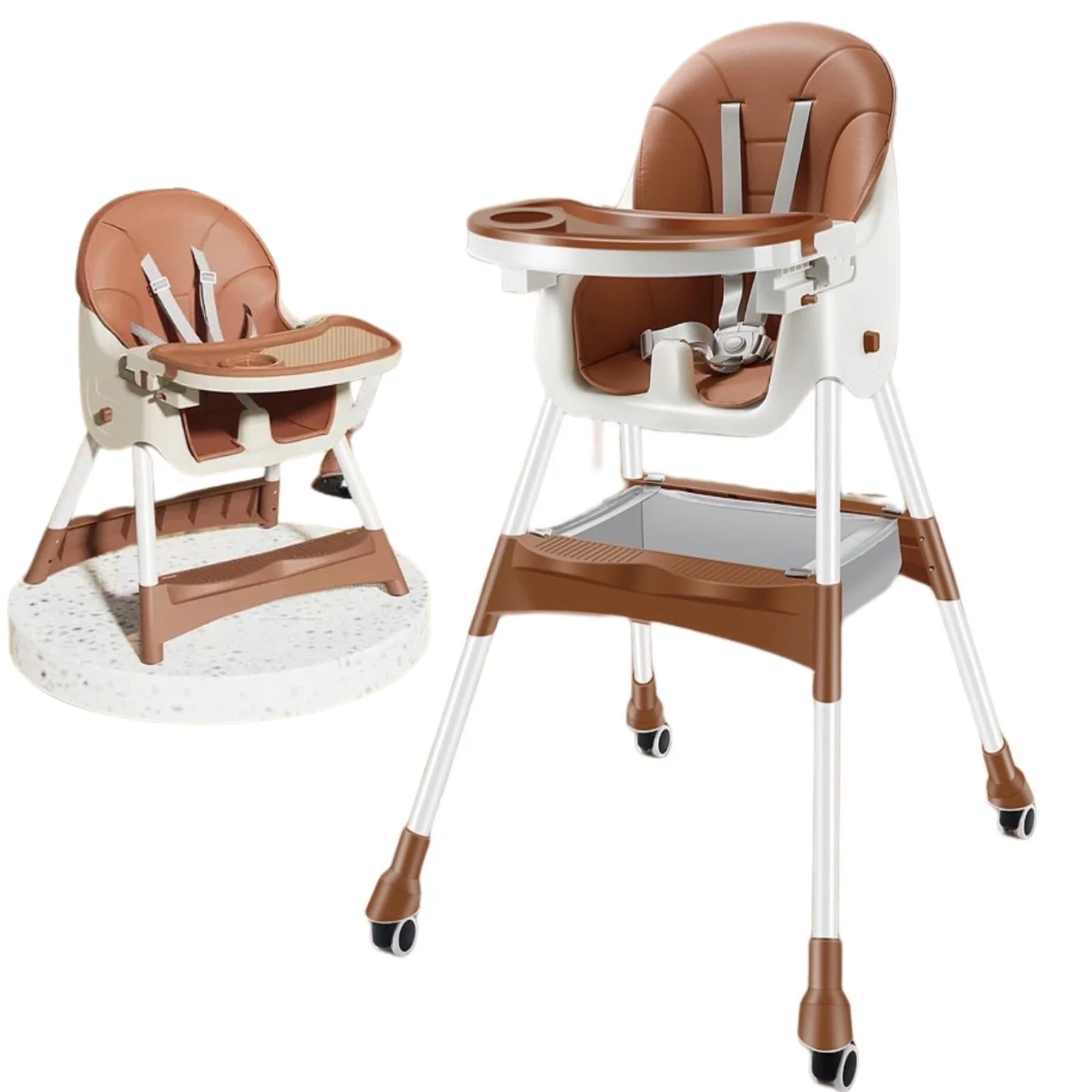 Scaun de masă 2 in 1 multifuncțional pentru bebeluși, Maro