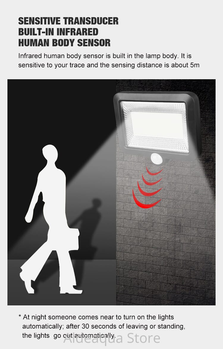 Lampa solare de perete are 2 senzori: senzor de miscare si senzor de lumina.