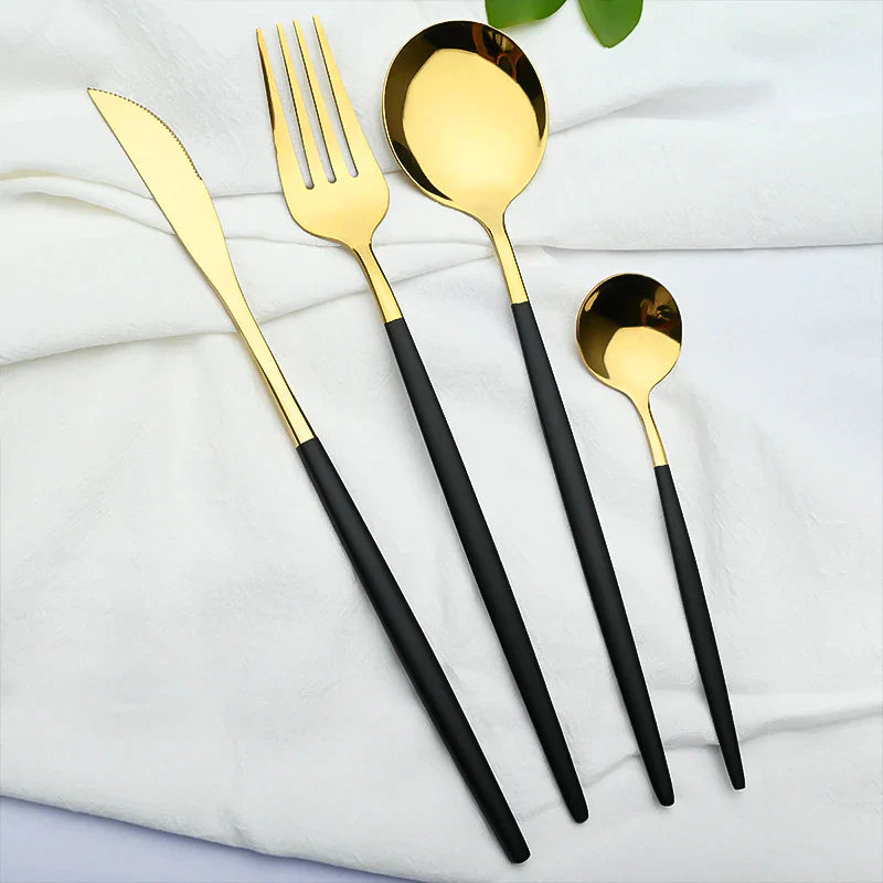 Setul de 24 de Tacâmuri emană eleganță și rafinament, prezentându-se printr-un design simplu și contemporan, îmbinat cu un finisaj luxos. Aceste tacâmuri adaugă o notă de lux și stil servirii, transmutând fiecare masă într-o ocazie specială.