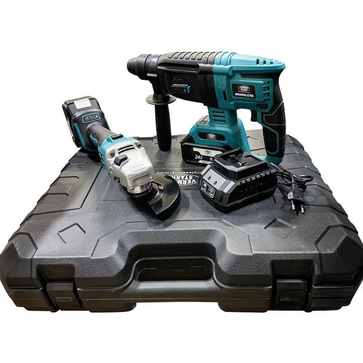 Trusa competa 4 Piese 24V 5AH cu Rotopercutor Bormasina Autofiletanta de impact si Flex